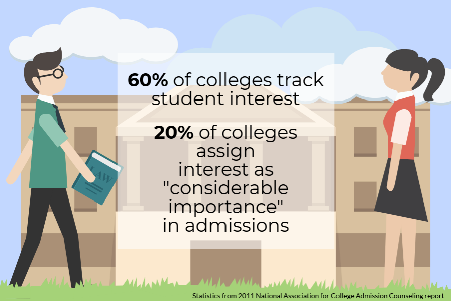 Similarly, the most competitive students have created strategies to let colleges know that they are super interested (...with the goal of appearing to be more interested than any other applicant). We're going to break down some of those strategies below.