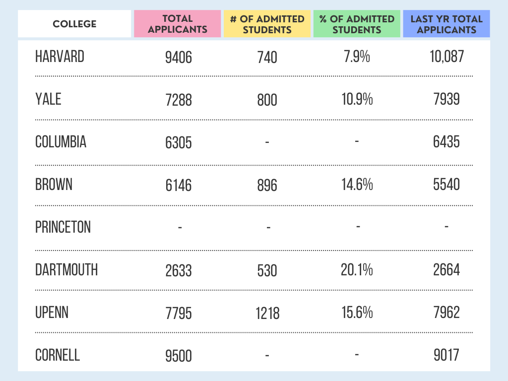 In general, the ivies have seen an ever so slight dip in applicant numbers since the 2020-2021 admissions cycle, but numbers still remain high - with most schools reporting the SECOND highest early applicant pool in history (the first being last year).